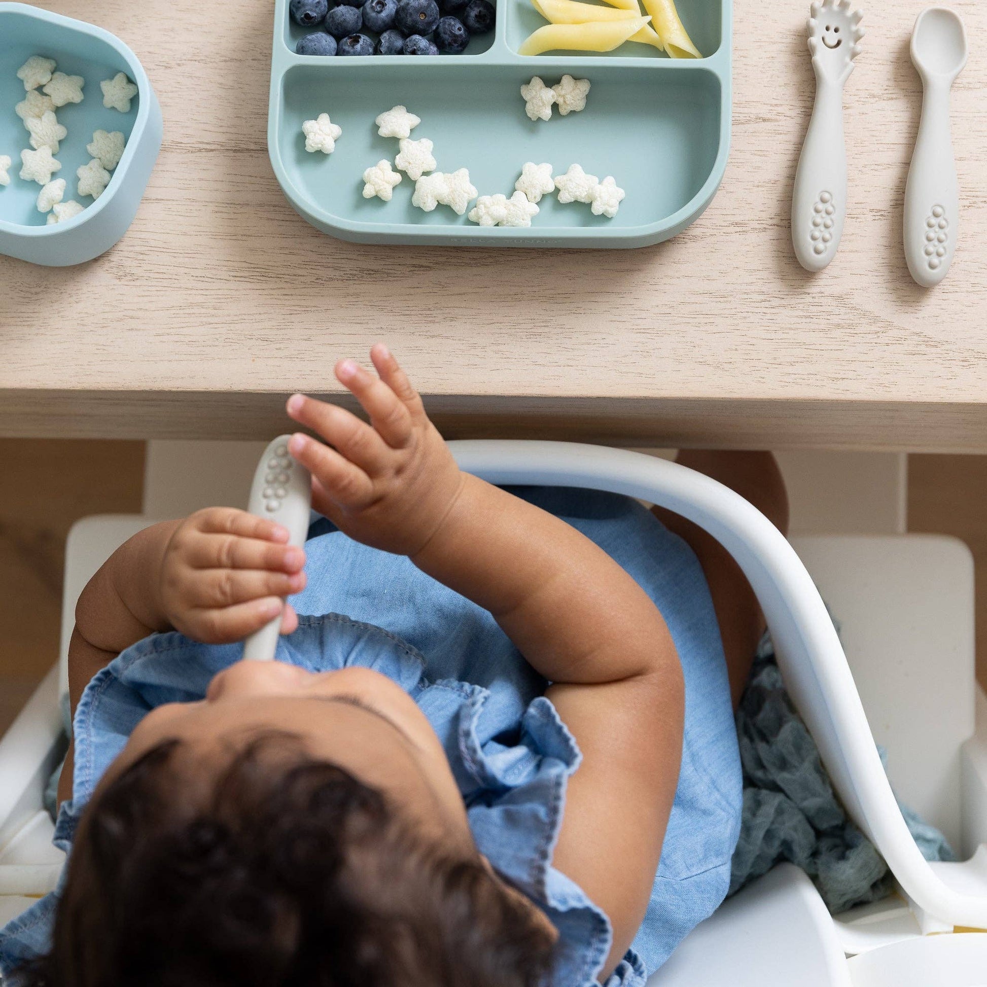 Ready, set, eat! Introducing our expert-approved toolkit of mealtime essentials for baby’s first food and drink! This set is the perfect new baby gift and a parent must-have. Each set includes all of the products needed for the first moment of introducing solids to little ones. Each product is designed to be used from parent led weaning or baby led weaning to independent eating. One set includes everything you need: 1 cup, 2 lids, 3 utensils, 1 suction plate, and 1 starter bowl in a ready-to-gift box (10.75" x 8.75" x 2.75"). -Non Toxic, Food Grade Silicone -FDA Approved, CPSIA Compliant -Free of BPA, PVC, Phthalates Great holiday, Christmas, Easter gift toy for 0-6 6-12 12-18 month baby toddler.