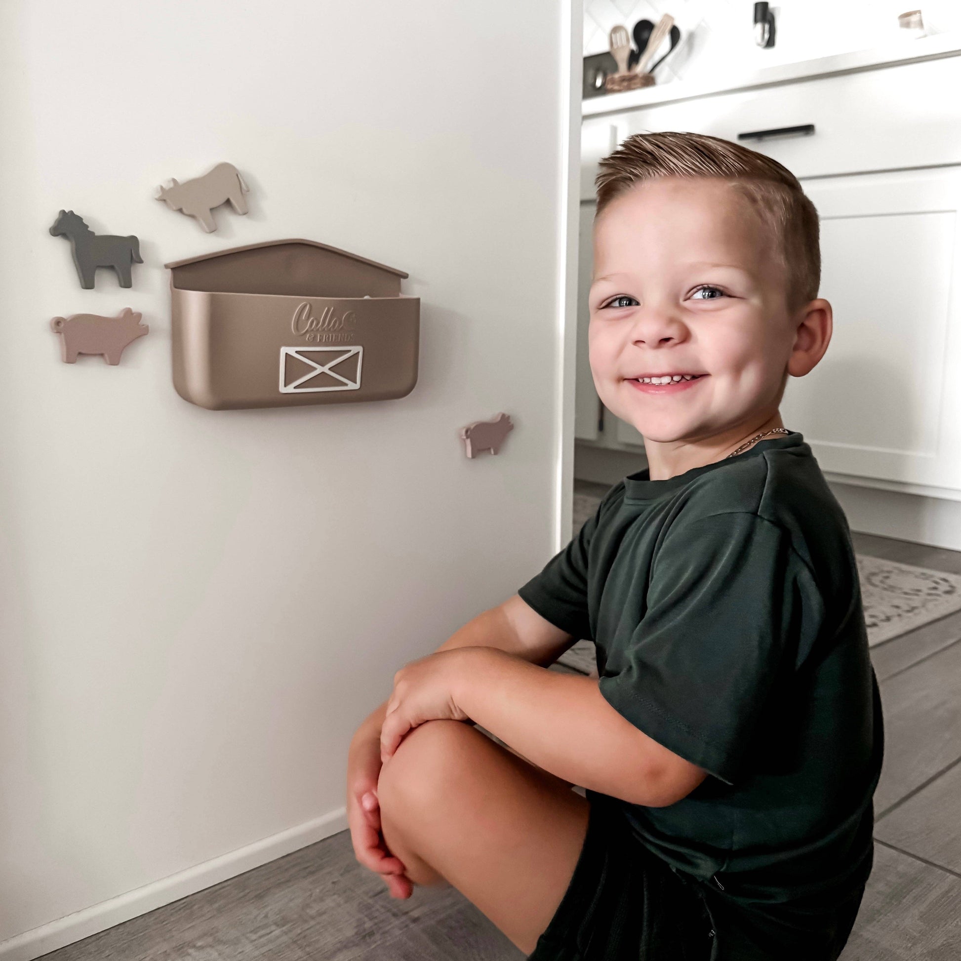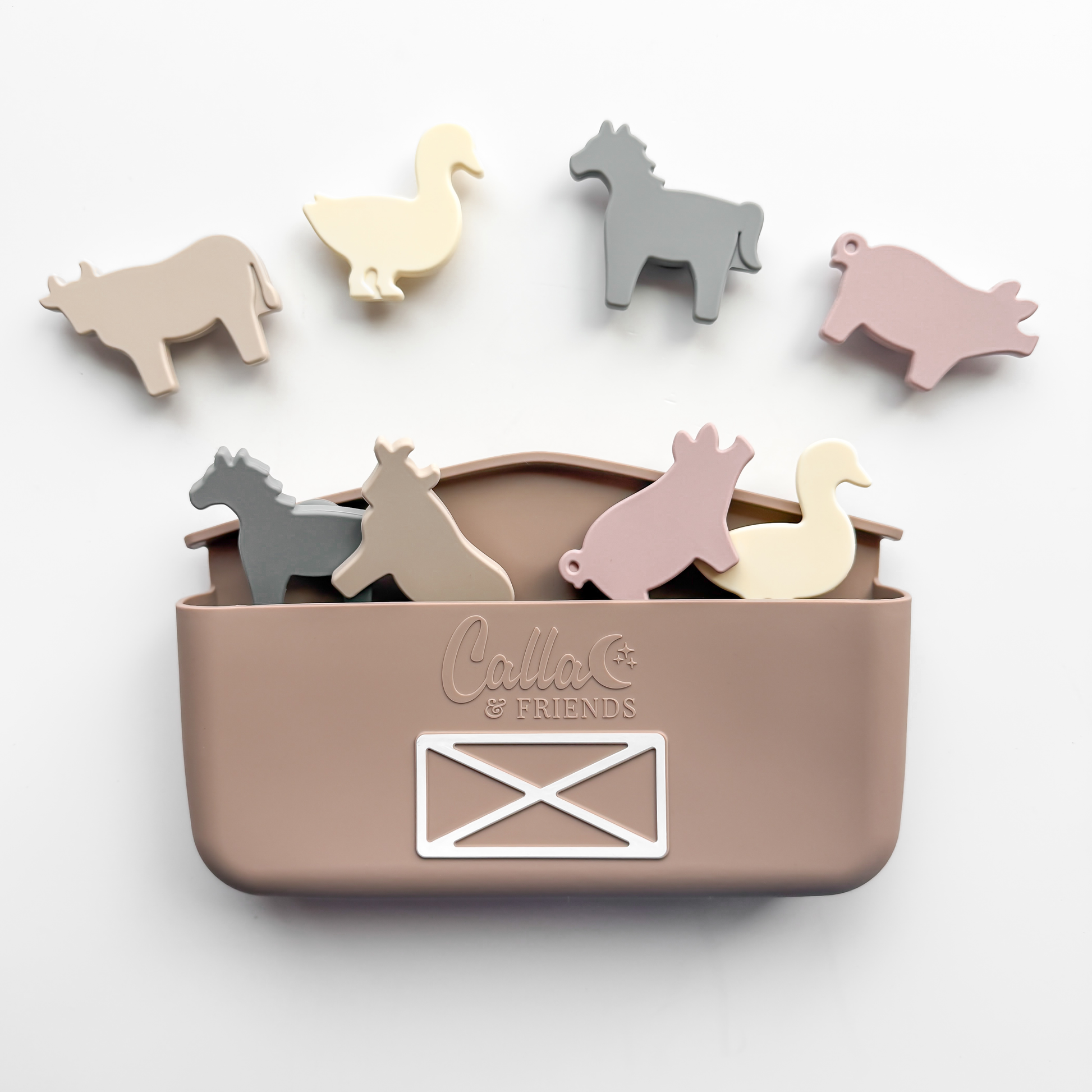 Bring farm fun to bath time, play time, and everything in between with our Farm Suction Toy Set! Designed to stick to tubs, fridges, windows, and more, these little farm friends spark imagination and keep curious hands busy. Made from non-toxic, food-grade silicone, they’re completely safe for little ones and dishwasher safe for easy cleanup. Each set comes packed in a reusable pouch so all your pieces stay together for play at home or on the go. Perfect for all your farm-loving kiddos! ✨Calla & Friends Exclusive Patent Pending Design✨