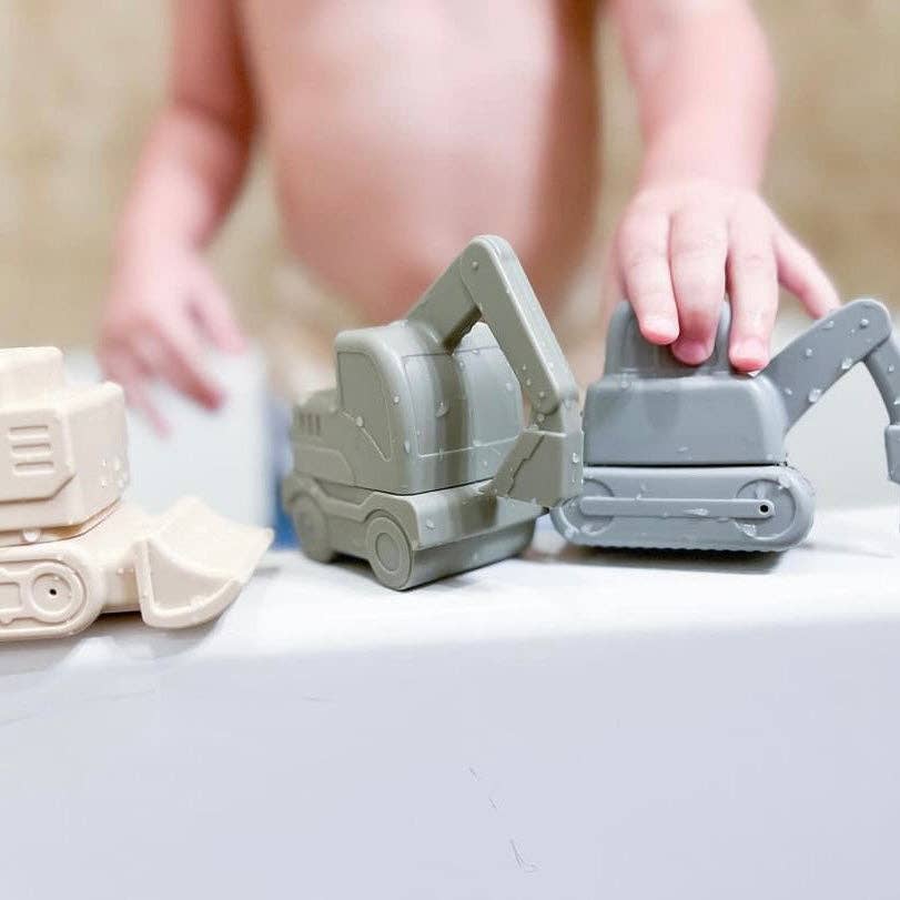 Let Grant's Truck Water Toys bring a new level of excitement to your child's bath time, pool play, or water table adventures. Crafted to fit comfortably in small hands & holes that spray water enhance the fun of their water adventures What makes these water toys stand out is their innovative two-piece design, making cleaning a breeze and ensuring a mold-free experience. Forget about concerns regarding stagnant water and mildew with these low-maintenance toys. They’re even dishwasher safe Each set of our construction truck water toys comes with a practical washable & reusable bag, simplifying storage and keeping your pool bag dry even when the toys are wet. Elevate your child's water playtime with our easy-to-clean and durable Grant's Truck Water Toys! - Non-Toxic - BPA Free - Phthalate Free - PVC Free - Lead Free - Packaging - C&F Food Grade, Reusable PEVA Bag