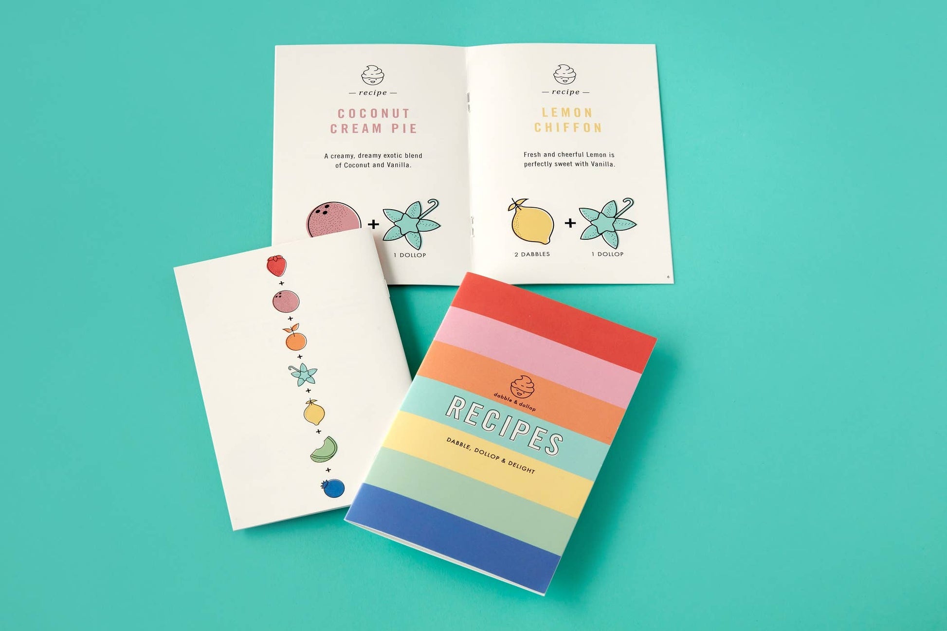 Dabble, Dollop, & Delight with our NEW Recipe Booklet! This 12-page keepsake features 11 easy to follow recipes teaching littles how to make bubbly combinations like: Strawberry Shortcake, Coconut Cream Pie, Lemon Chiffon, and many more! Plus, our last page features six "Create Your Own" spaces where kids can dream up and write down their own combinations!