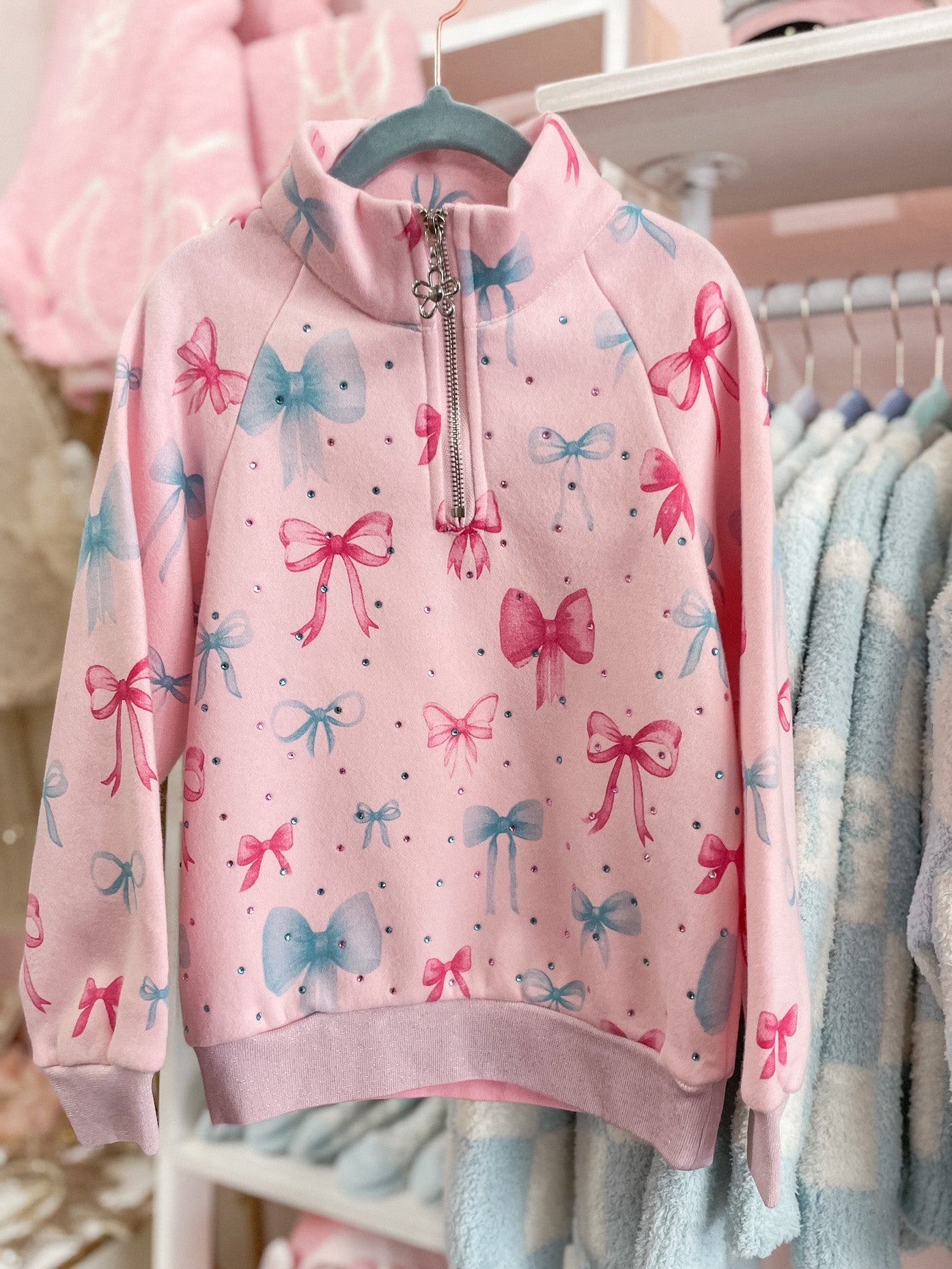 Bow Print Quarter-Zip Sweatshirt 🎀