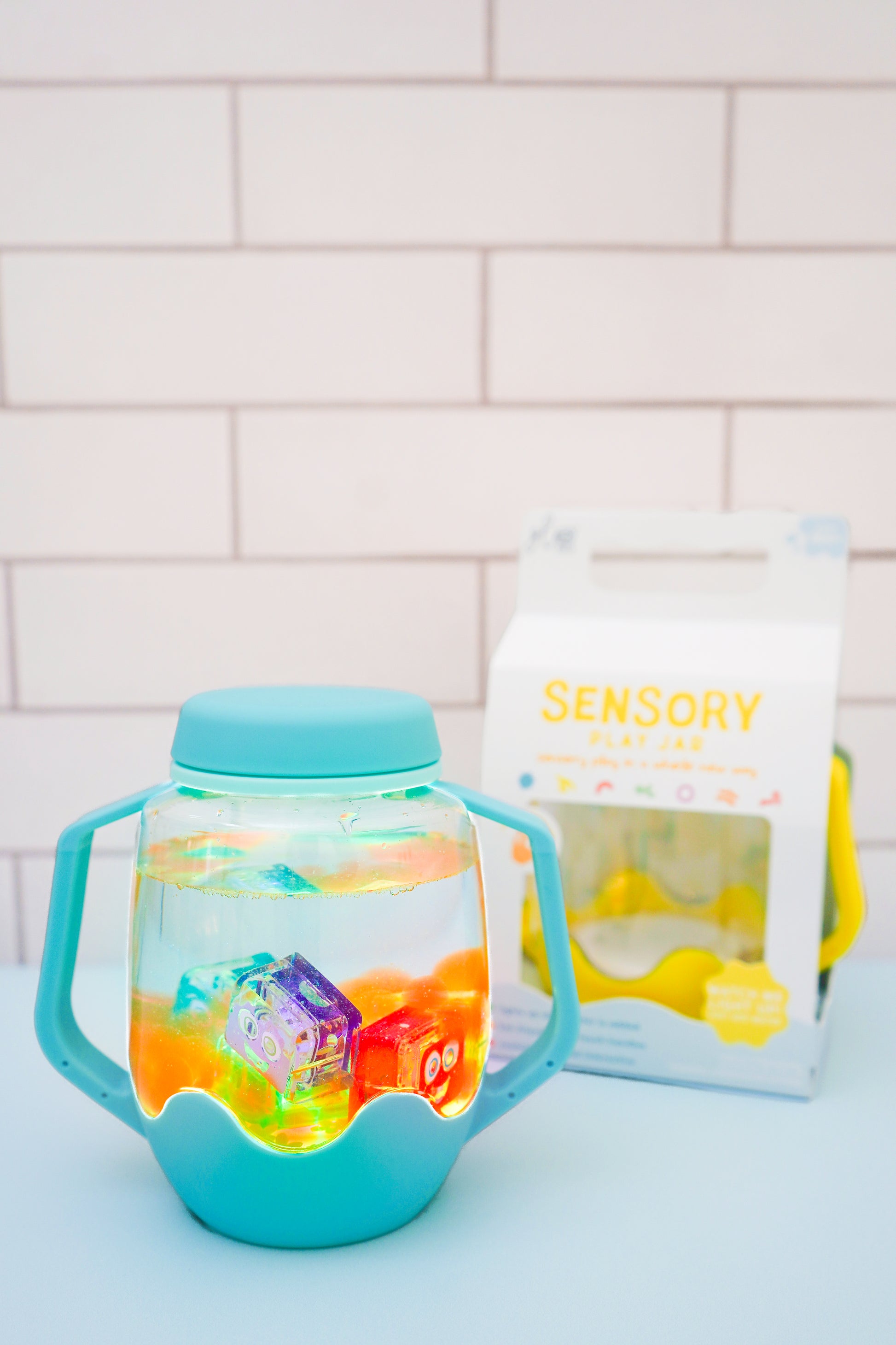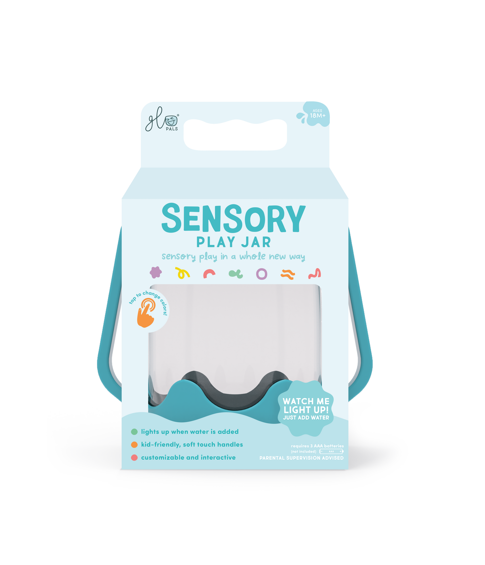 HOW TO CARE FOR YOUR SENSORY PLAY JAR: Remove all contents and liquid after play time. Hand wash ONLY with soap and water. Please keep the battery compartment dry and do not submerge your Jar in water.