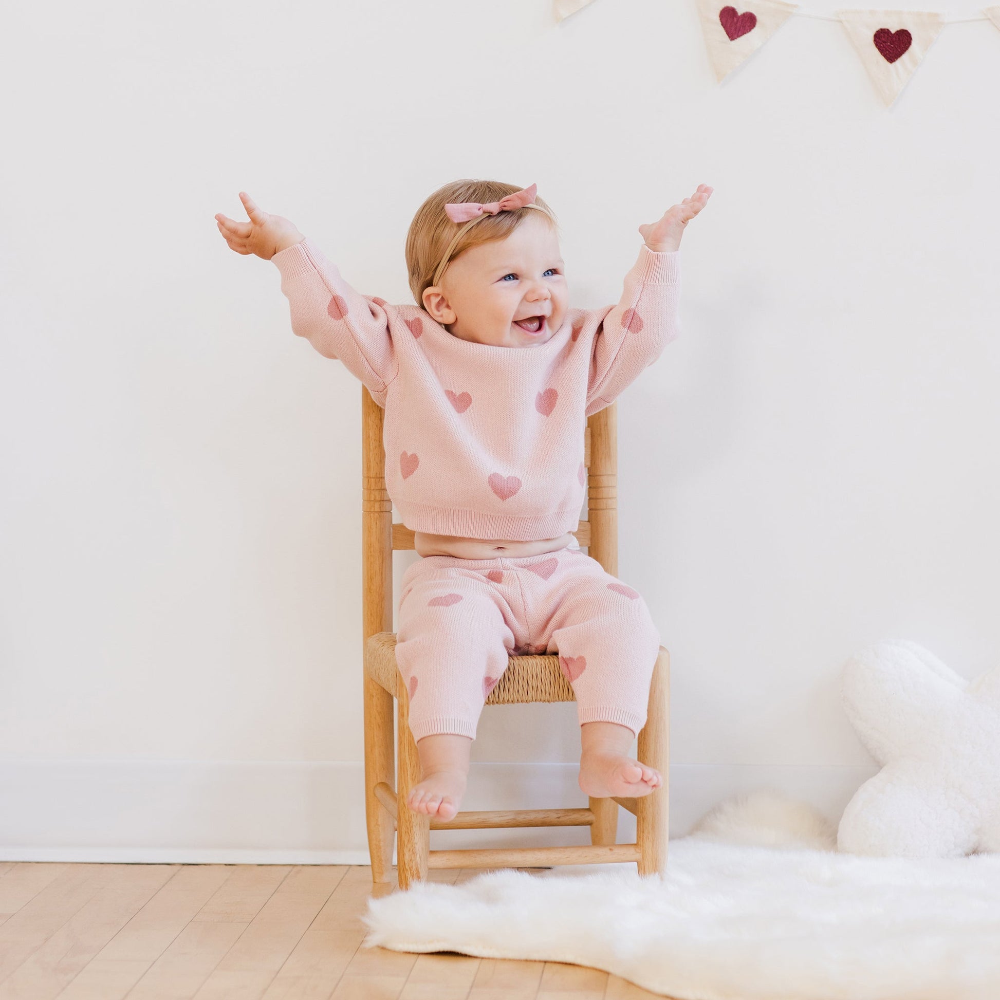 Featuring a 'lipstick hearts' pattern on our 'bubblegum' hue.