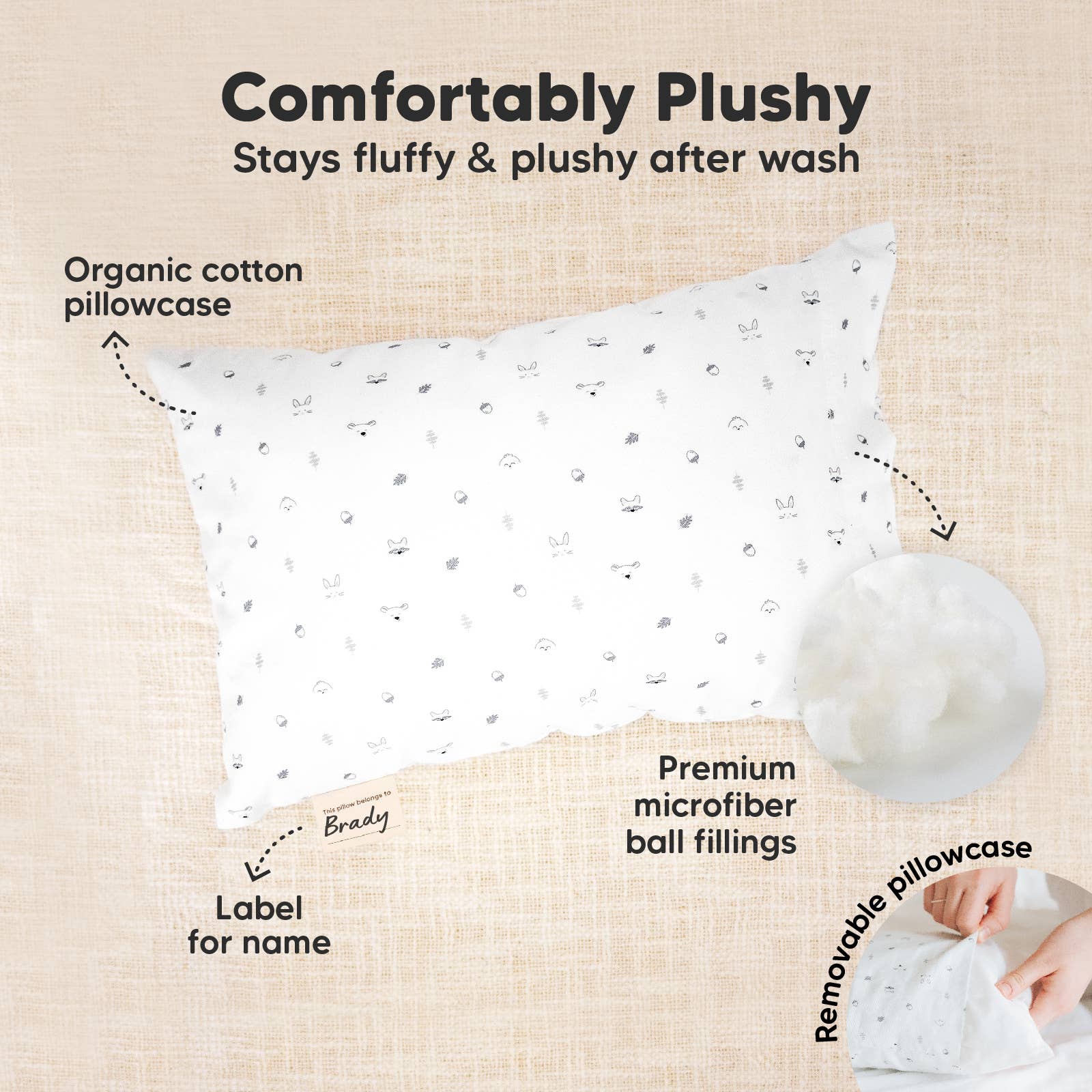 This soft and fluffy miniature pillow is made with a breathable, organic cotton pillowcase that is safe and gentle on the most delicate skin. KeaBabies Most Adorable Pillow Ever Measuring in at a cute and compact 9" by 13", the Mini Toddler Pillow is the perfect size for young children to cuddle up with any time, anywhere. Whether they're snuggling up with a good book or drifting off to sleep, the KeaBabies My Little Dreamy Pillow Mini will be there to provide comfort and support.