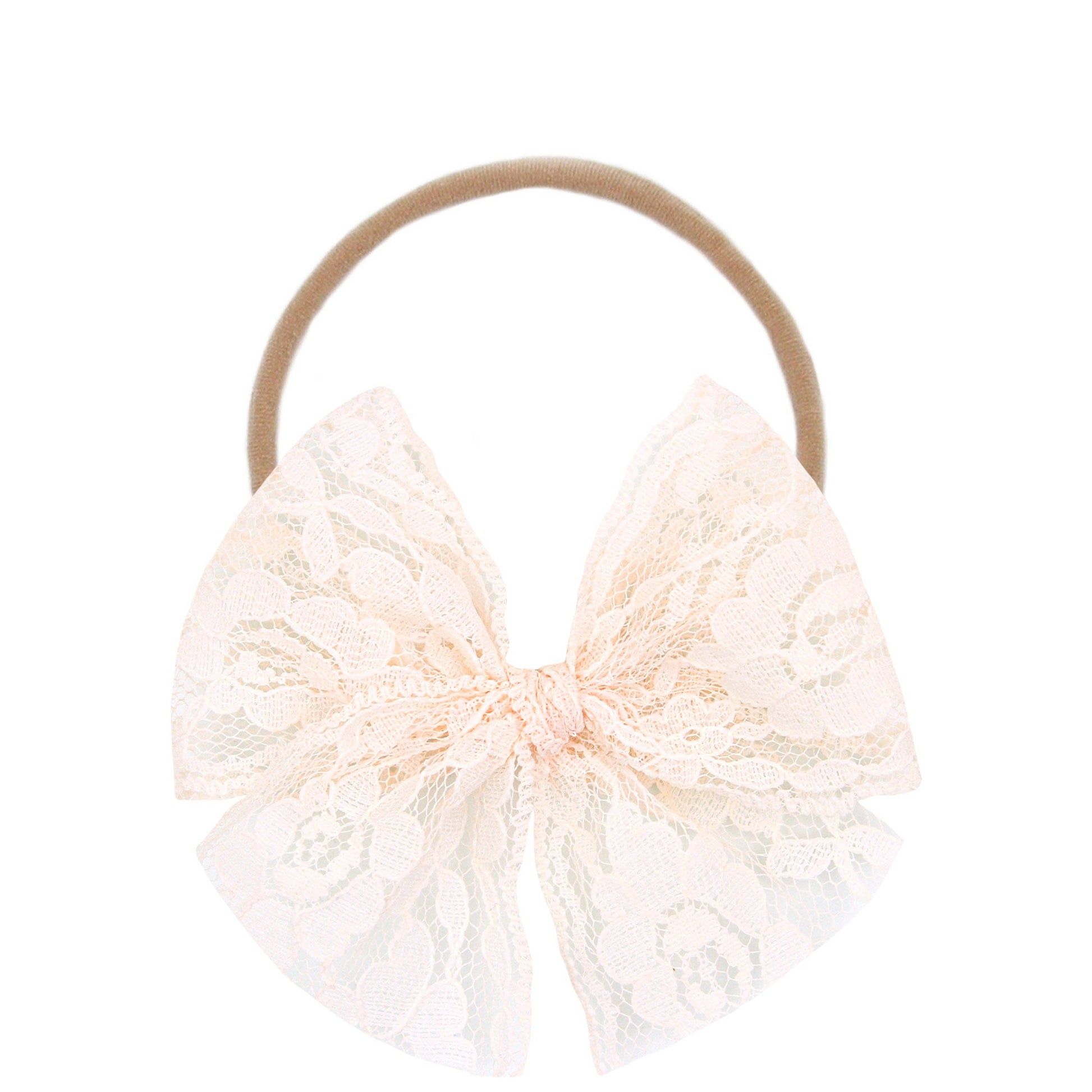 Truly one of a kind! Each bow is hand-tied by local moms with one of a kind vintage lace and attached to a one-size-fits-all nylon headband. All bows and edges are secured and sealed so they don’t come undone.