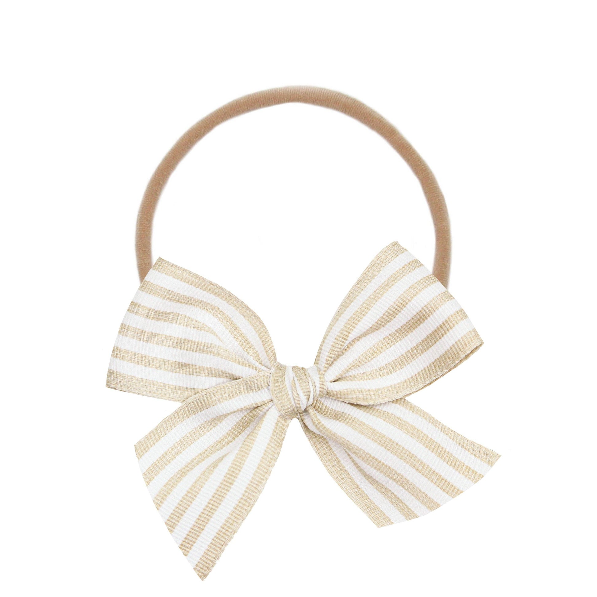 Truly one of a kind! Each bow is hand-tied with one of a kind vintage lace and attached to a one-size-fits-all nylon headband. All bows and edges are secured and sealed so they don’t come undone.