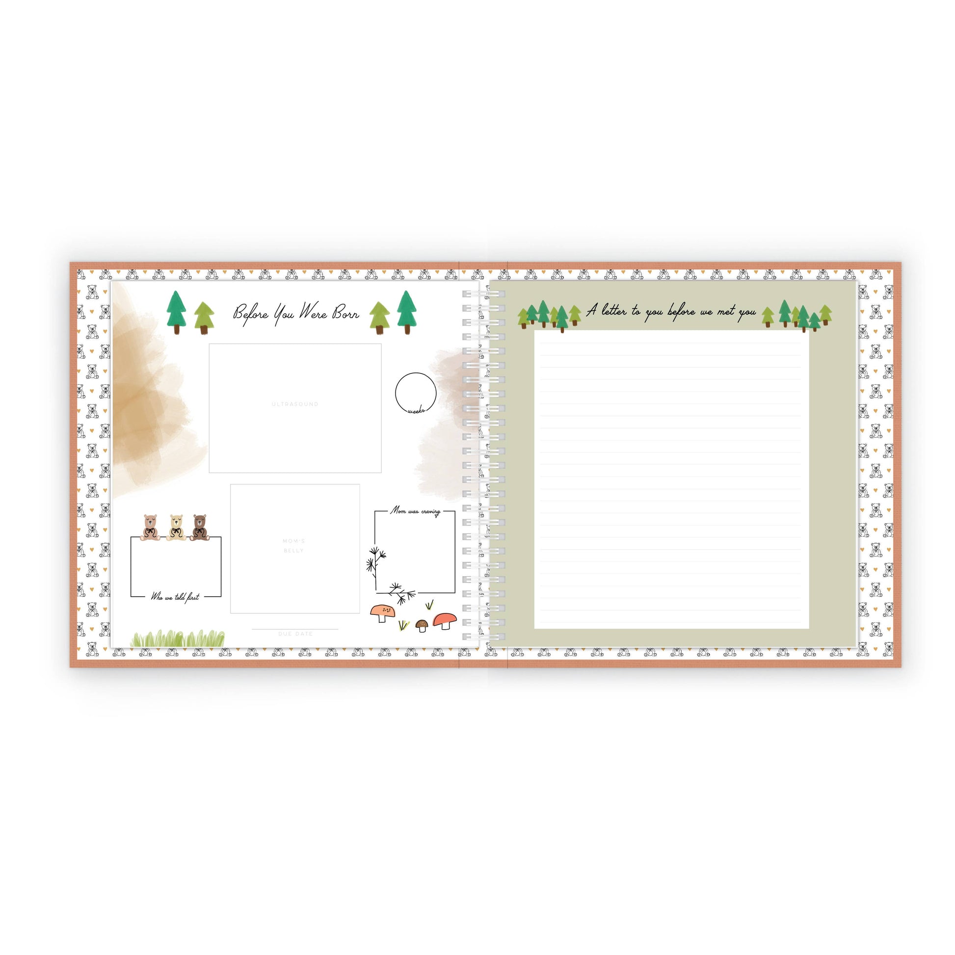 Teddy Bears Picnic Luxury Memory Book captures each darling moment from pre-birth through the 1st day of school. Complimented by precious Teddy Bears and adorable picnics in a soft wooded landscape. Cherish every special memory and milestone of baby's first year with this elegant keepsake book. Perfect for you, or as a gift to easily record and enjoy your forever memories.