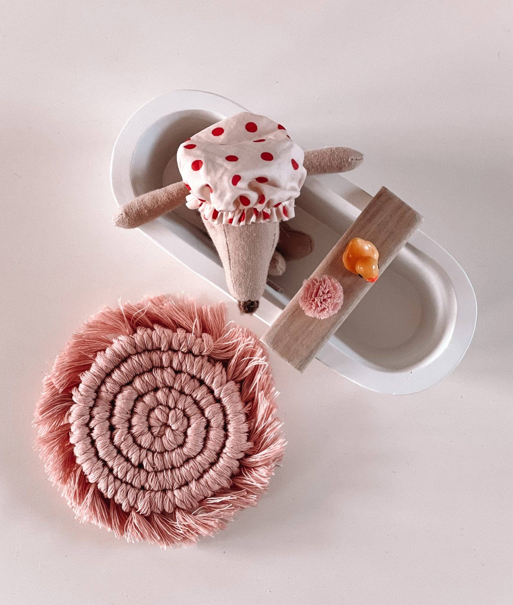 The best layering piece for your miniature home! We love using these rugs in bathrooms, kitchens, bedrooms and more! With the array of colors, you can find one that perfectly matches your tiny home aesthetic. Specifications: Includes: 1 rug in your choice of color Scale: 1:12 Measurements: Diameter: 4" with fringe *All other accessories sold separately *All rugs are handmade, there may be slight variations in size and color in relation to the item in images.