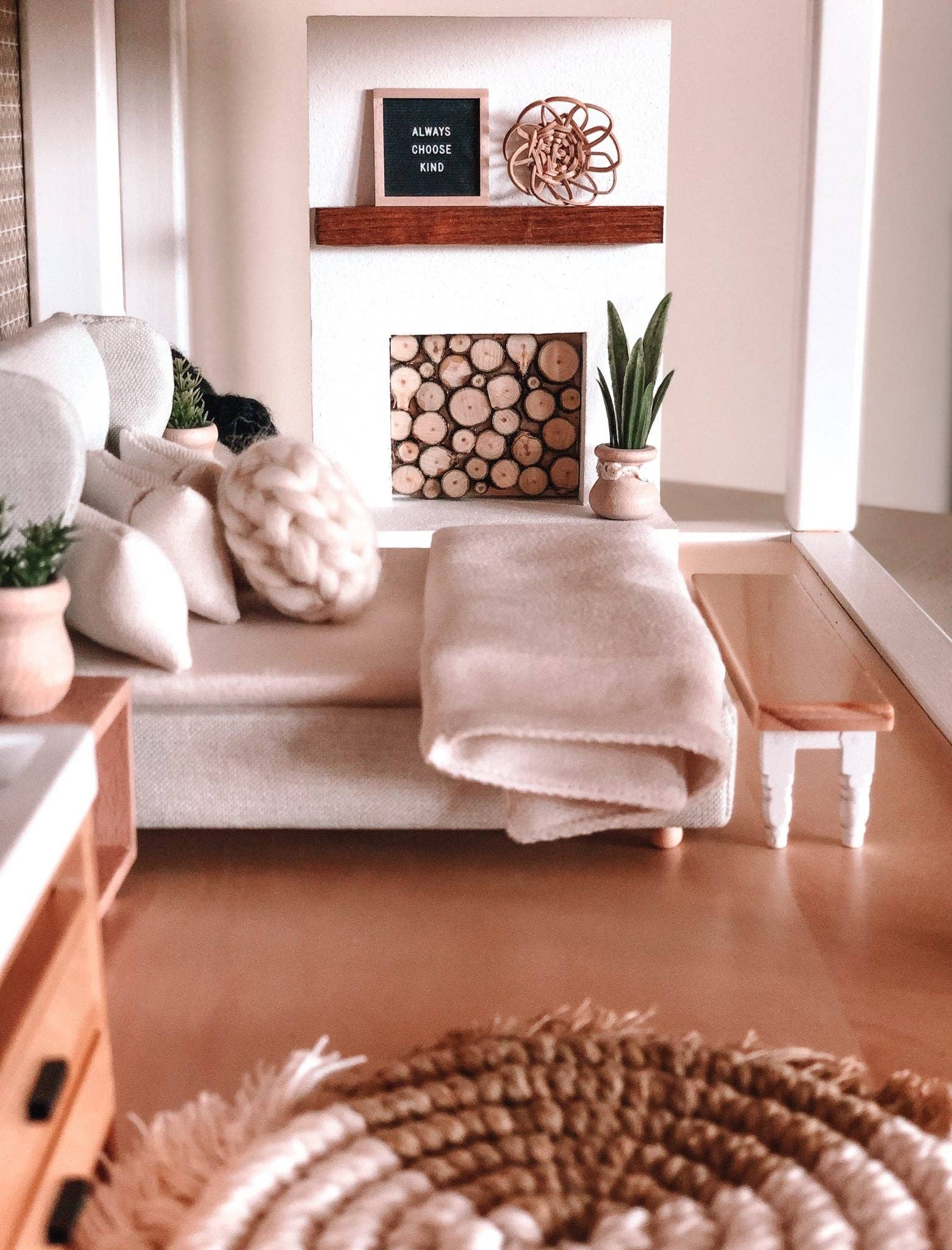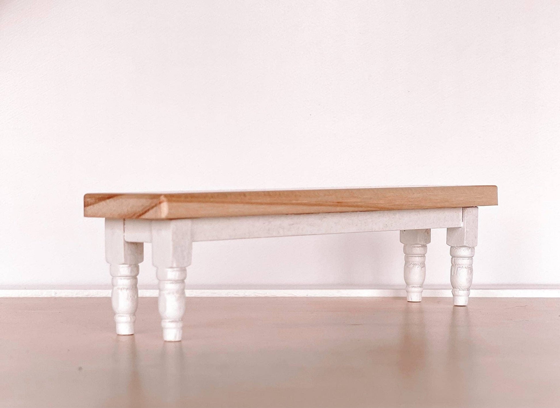 Macy Mae Dollhouse Designs - Dollhouse Classic Bench Seat | Natural Wood & White