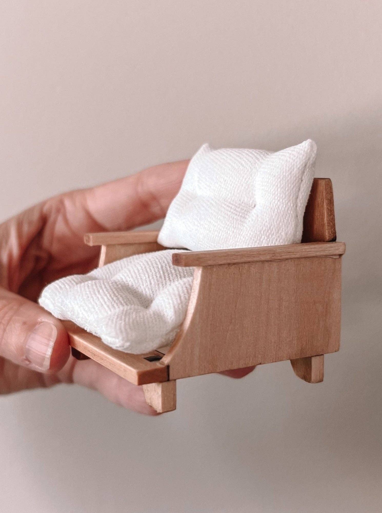 Macy Mae Dollhouse Designs - Dollhouse Patio Chair + Tufted Cushions | Natural Wood White