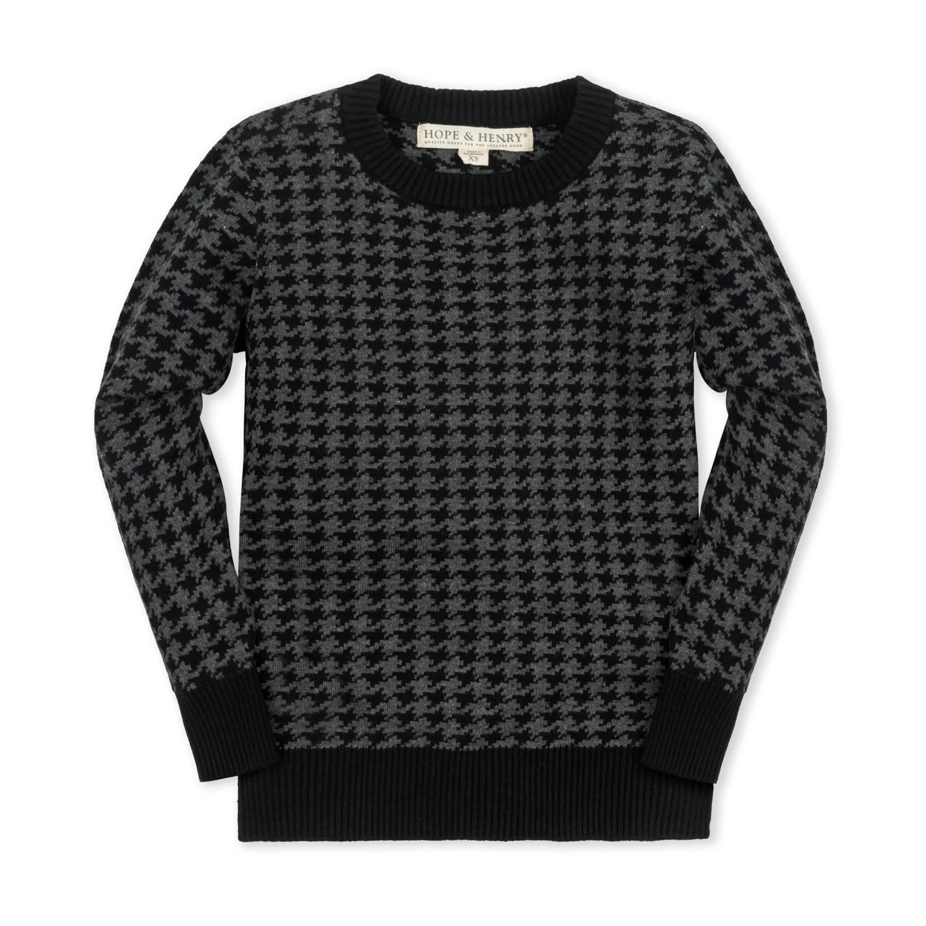 Crew neck pullover sweater in soft organic cotton with a houndstooth intarsia design and ribbed cuffs and collar. Easy to layer!