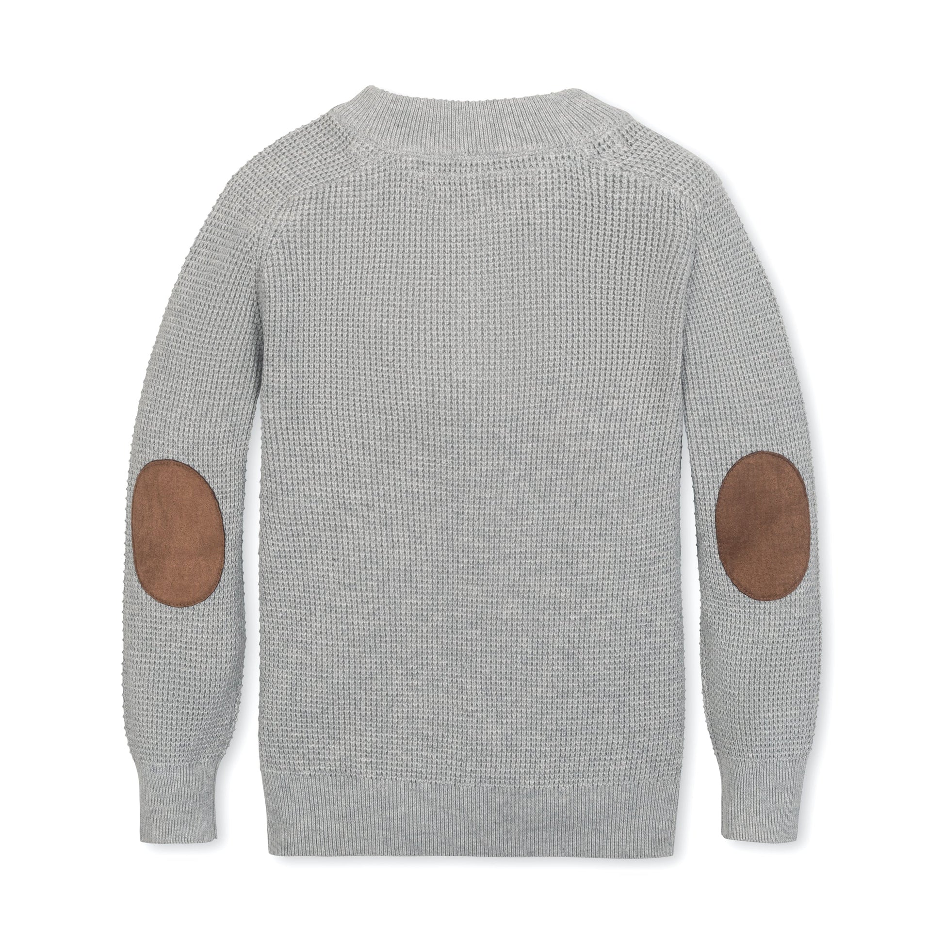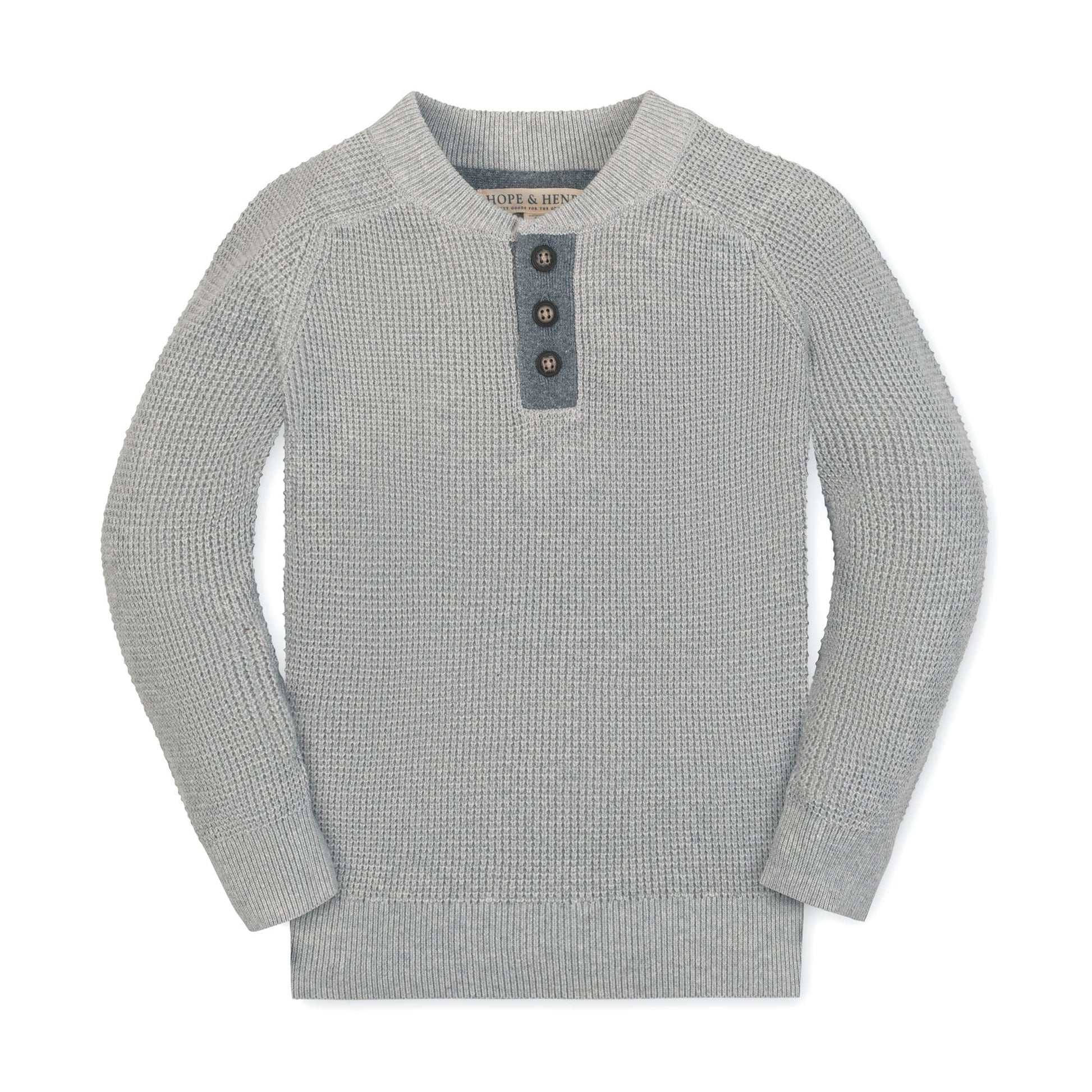 The sweater henley in soft organic cotton waffle knit by Hope and Henry combines the sporty look of a henley with the coziness of a sweater for the ultimate in comfort and style. Features faux suede elbow patches, button closure at the center front placket, and rib trim at the cuffs and collar.