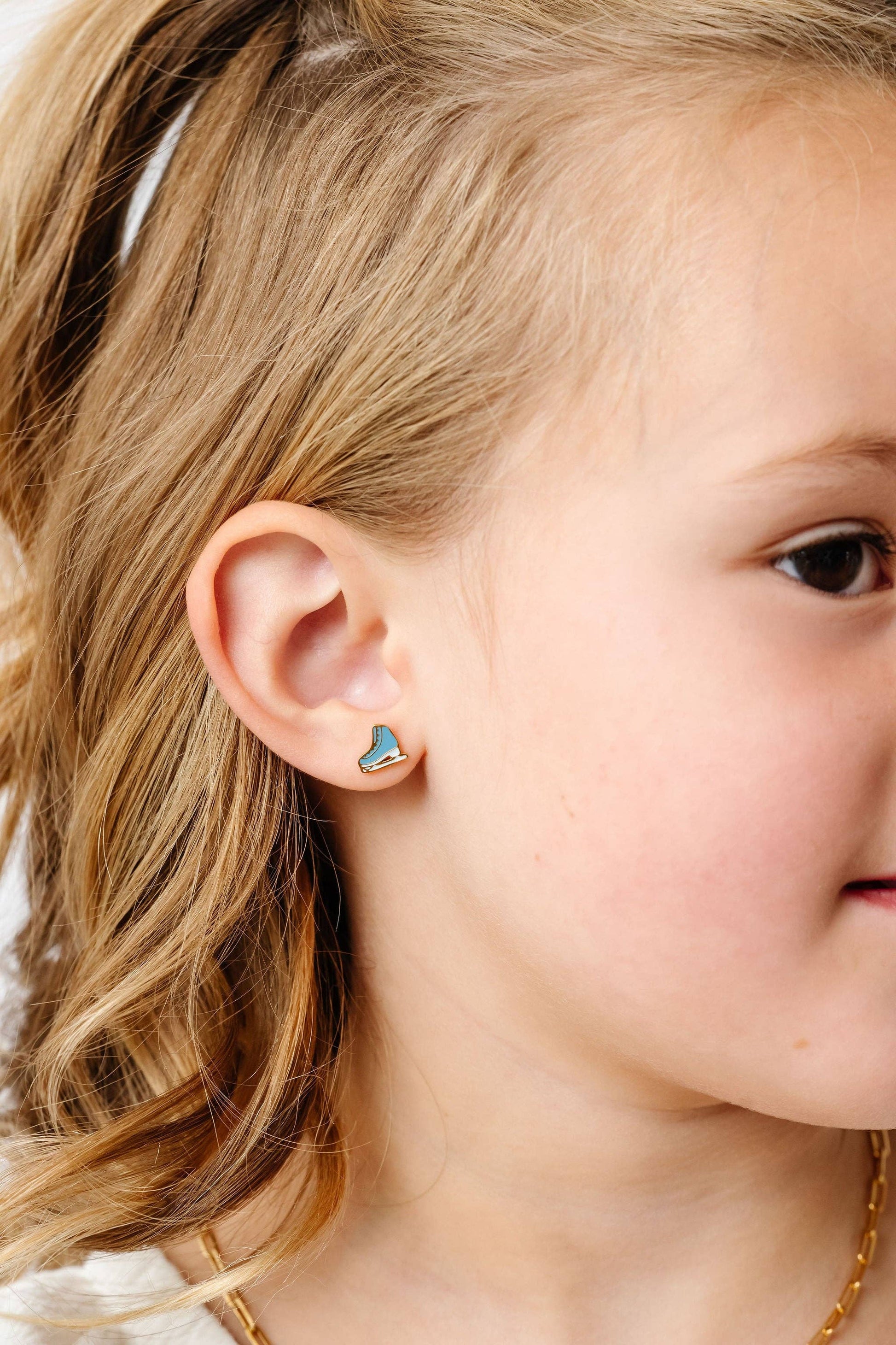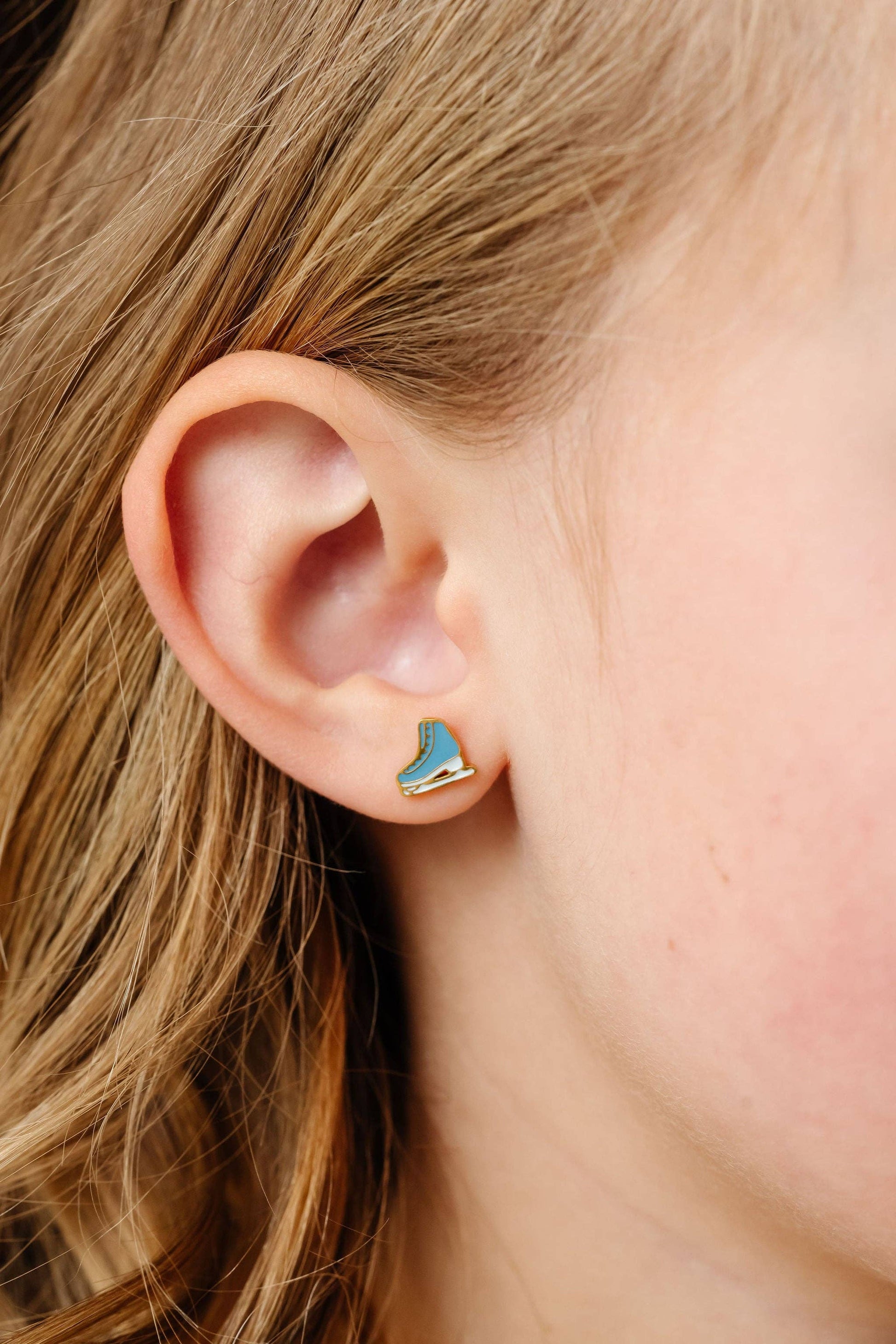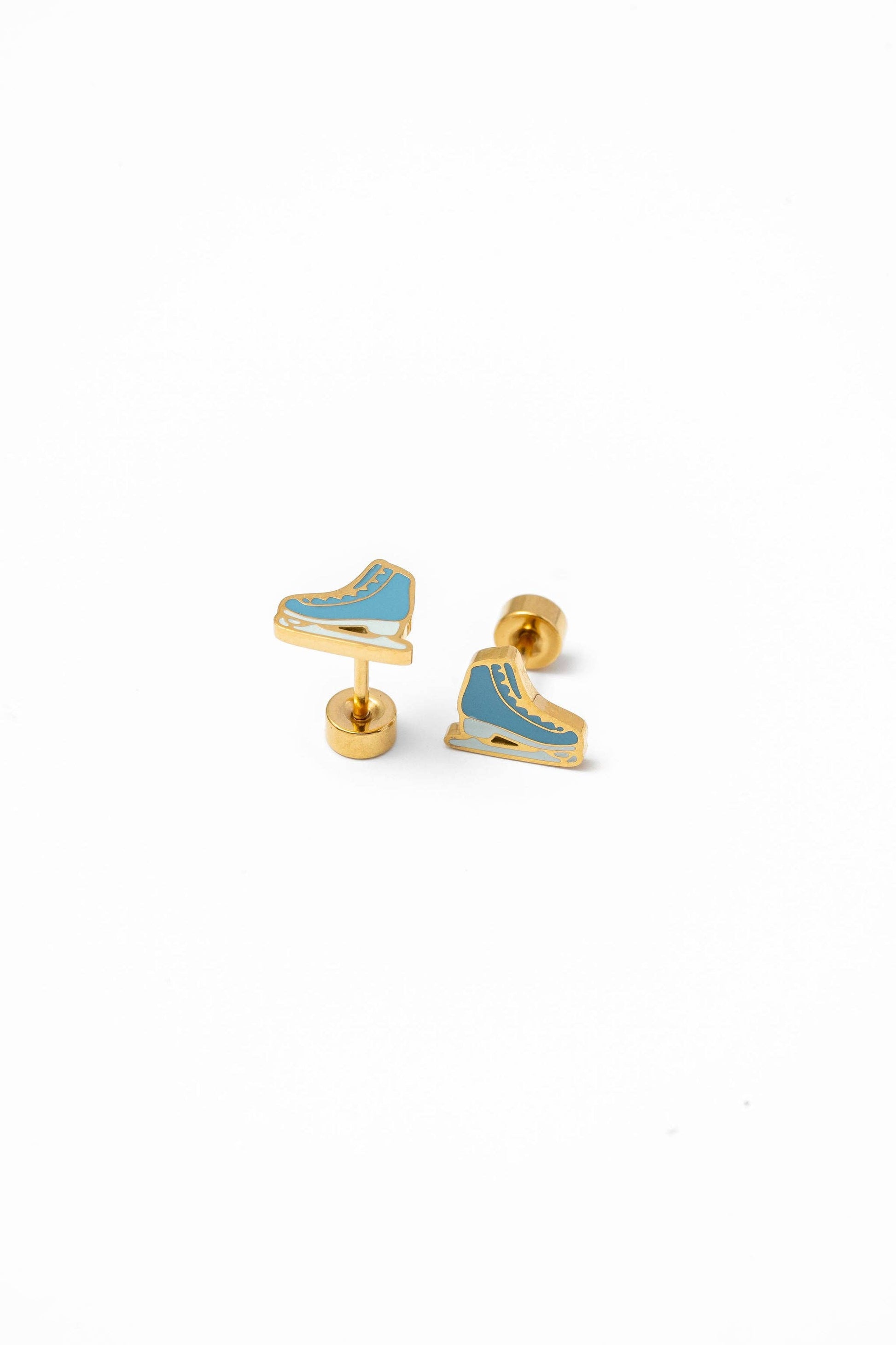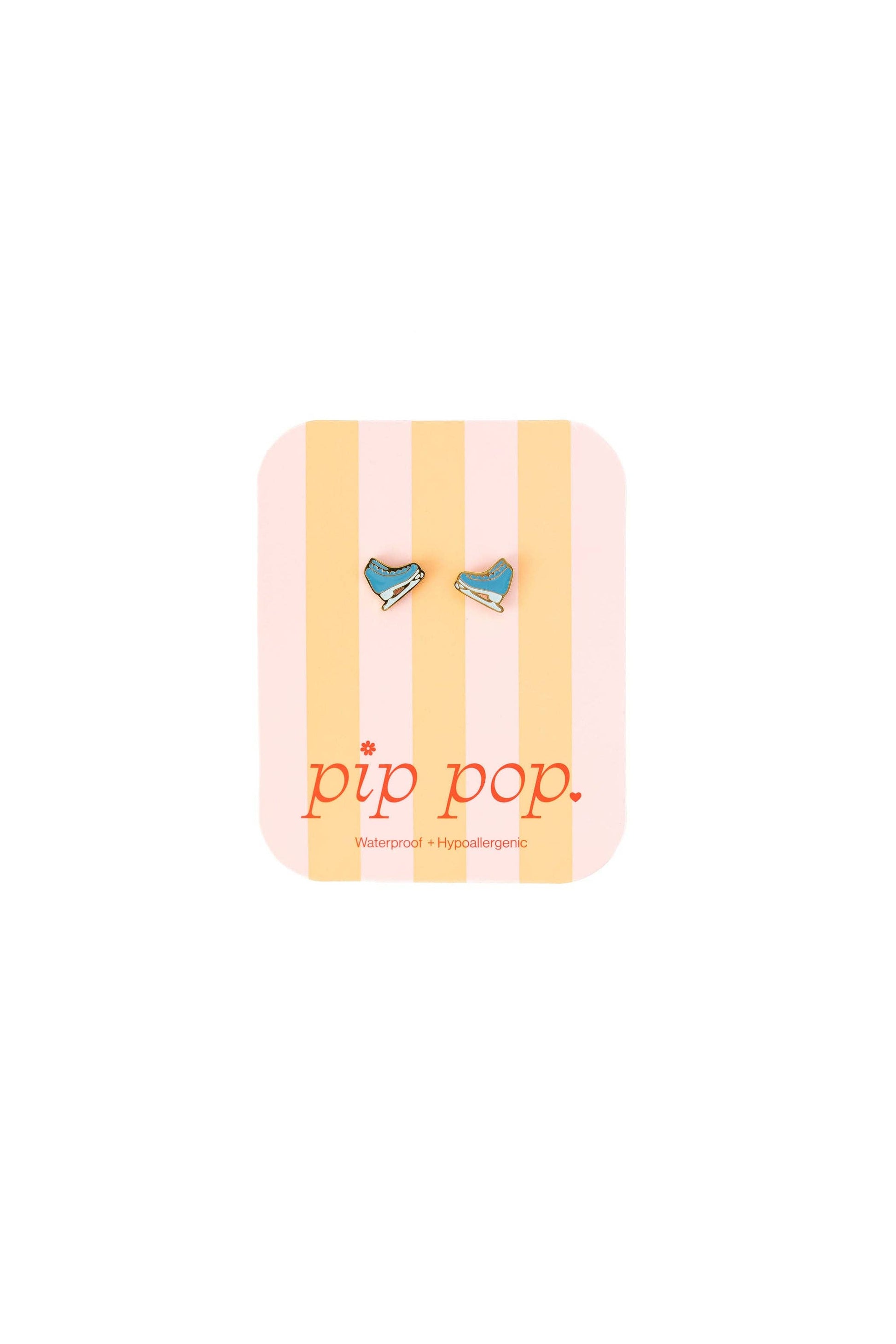 Why We Made It: Pip Pop Ice Skate studs will look adorable on and off the ice! These playful earrings are comfortable and fun—perfect for kids and adults alike. The Fine Print: * Ouch-free and secure screw-back posts * Free from: Nickel, lead, and copper Earring Dimensions: * Post Length: 9mm * Post Size: 20 gauge, .8mm * Earring size: 8mm x 8mm