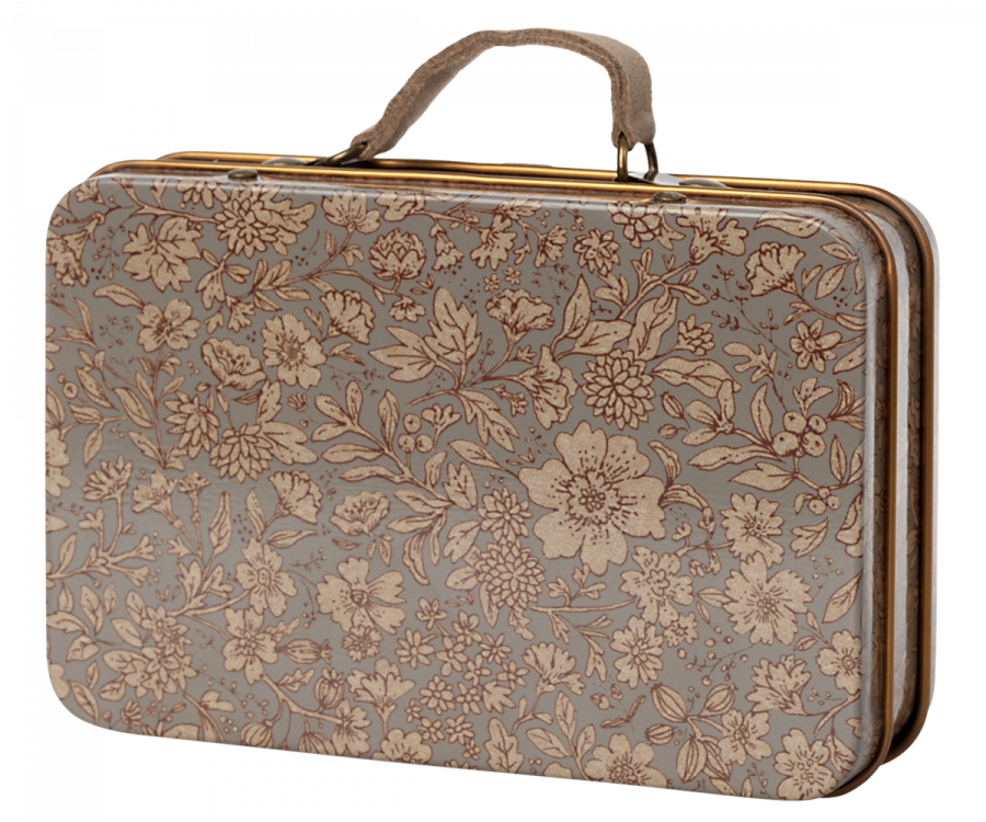 This set is all you need for your soft plush dog. The set includes a bone, collar and leash packed nicely in a metal suitcase with a beautiful Maileg print.