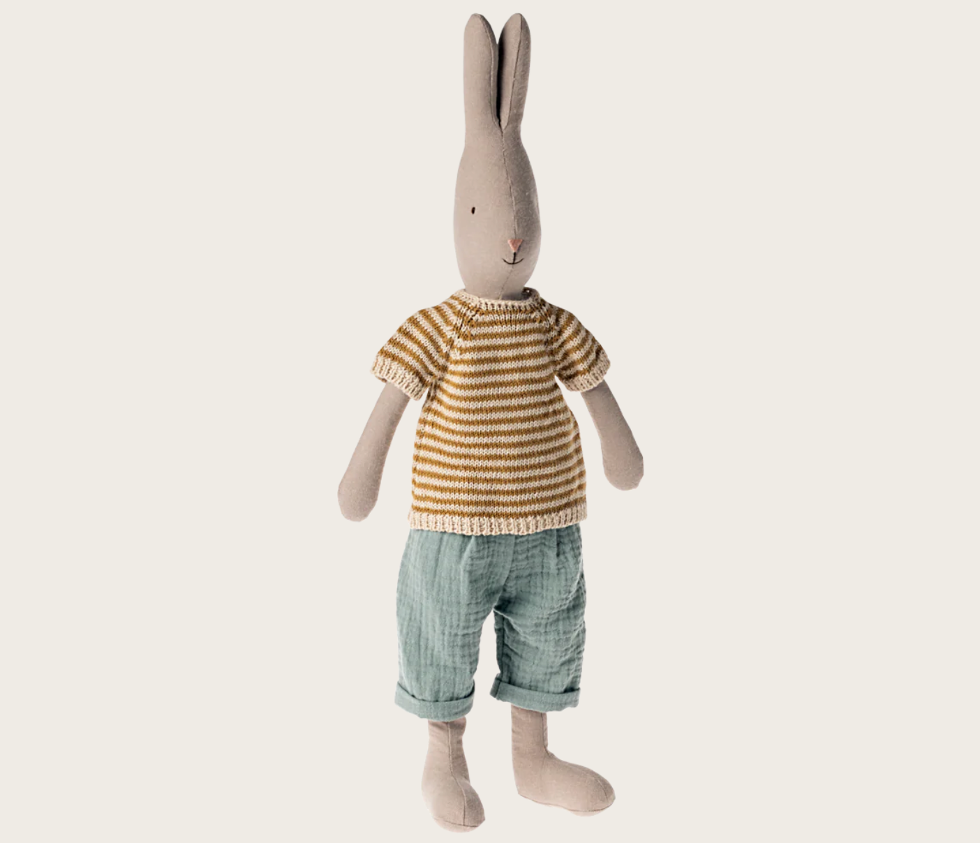 The classic bunny and rabbit collection is made of soft natural linen and cotton fabric that gives a lovely hand feel and look. Buy loose clothes separately to expand the bunny's wardrobe.
