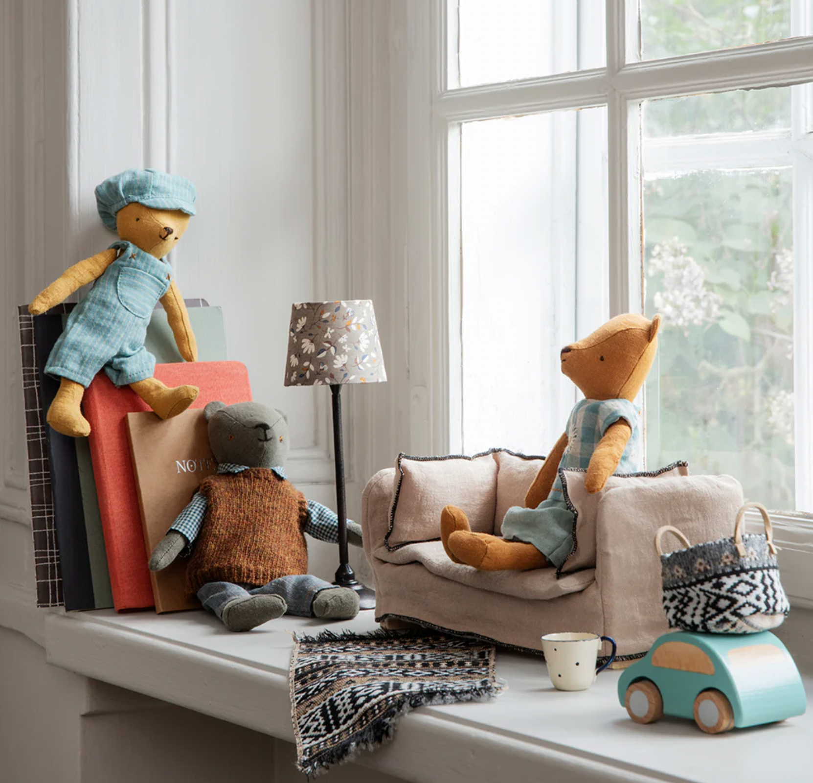 The Teddy bear family is a sweet collection of 4 different sizes of Teddy bears. They are made of soft linen and their shoulders are articulated so they can rotate and stay in place. The Teddy Family has a vintage look that will bring back dozens the memories.  Teddy Juinor is a light ocher color.